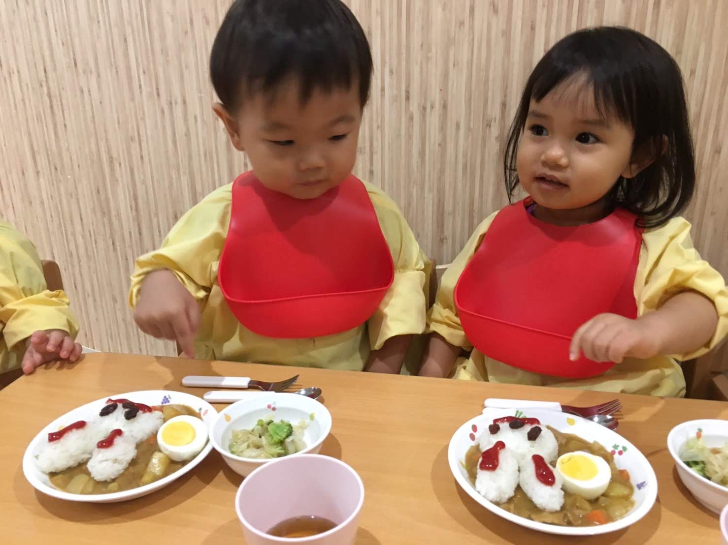 お月見の日は、うさぎさんのお月見カレーに大喜びの子どもたちでした😊