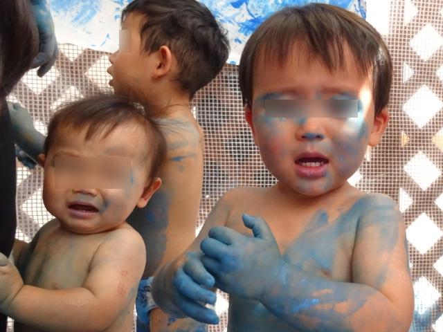 園で初めてのボディーペインティングをしました(^^♪最初は何が始まるのか不思議そうに見てました!