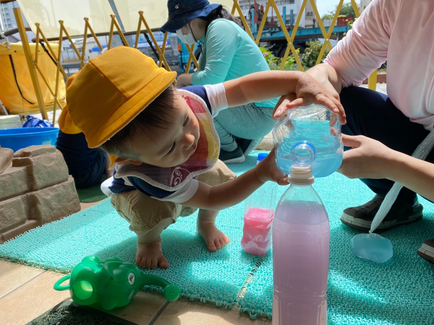 色水のぷにぷにした感触や、ひんやりとした冷たさにもう夢中!