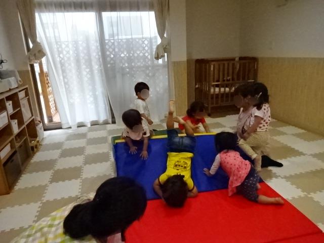 今日は朝から雨☂だったので、マット遊びをしたり、てるてる坊主を作って過ごしました。大きなマットに大喜び♪這い這いで進んだり、コロコロ転がる子どもたち