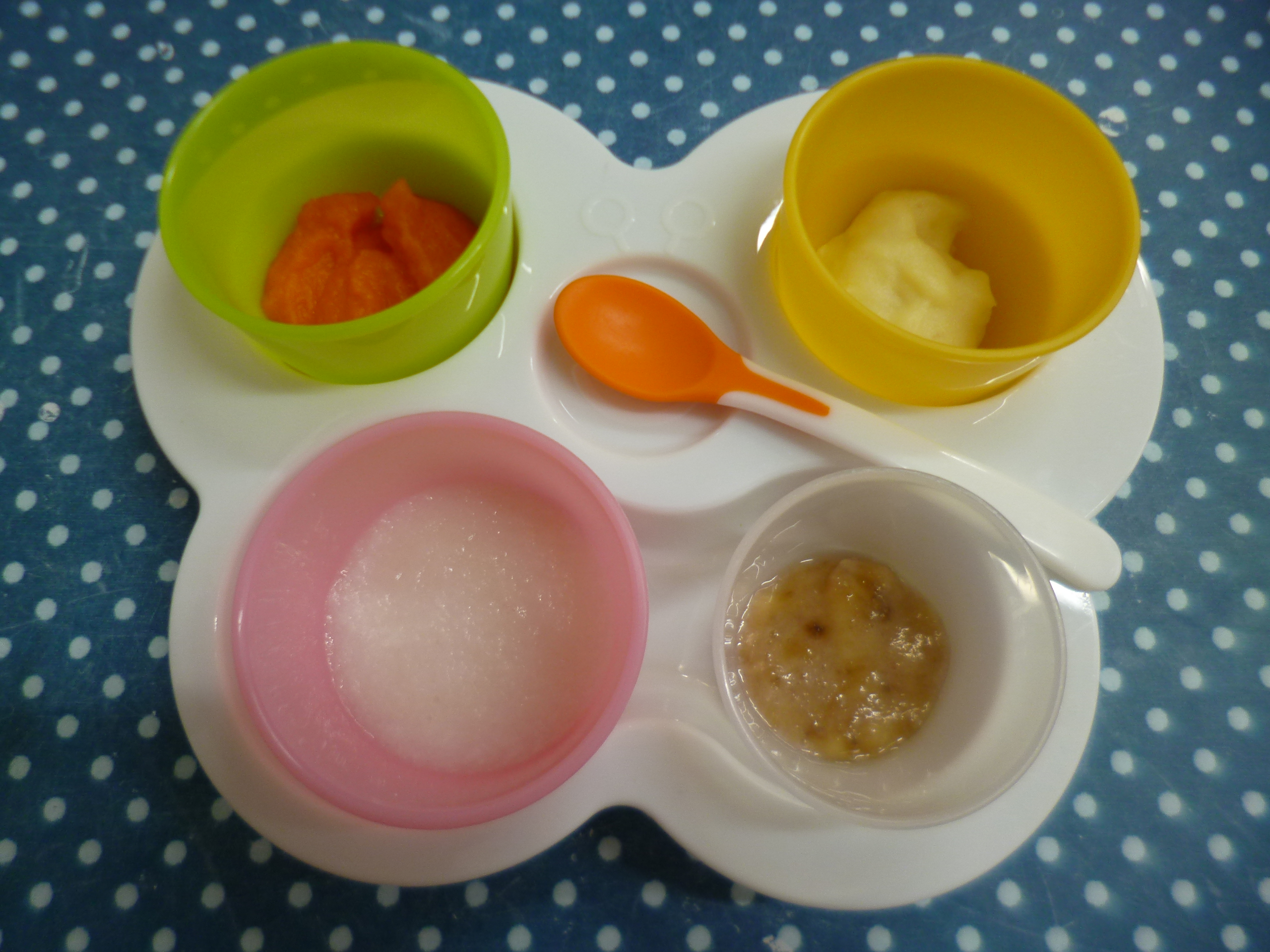 《離乳食:初期》【かゆペースト】【カラスカレイ・じゃが芋ペースト】【人参ペースト】【バナナ】